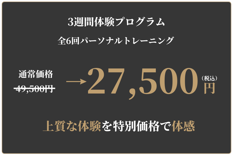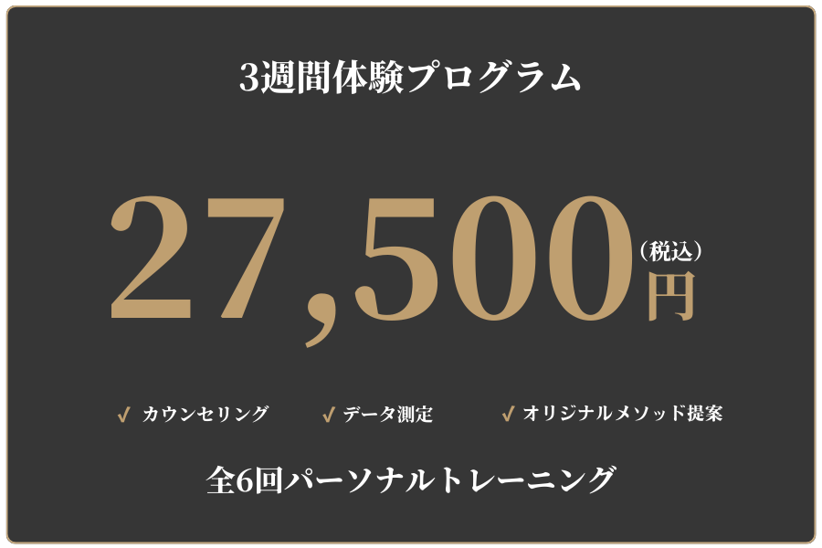 3週間あれば、トレーナーの指導力やジムの雰囲気をしっかり体感できるだけでなく、実際にカラダの変化を実感できます。また、適切なプログラムと専門的な指導が結果につながることも理解できるはずです。